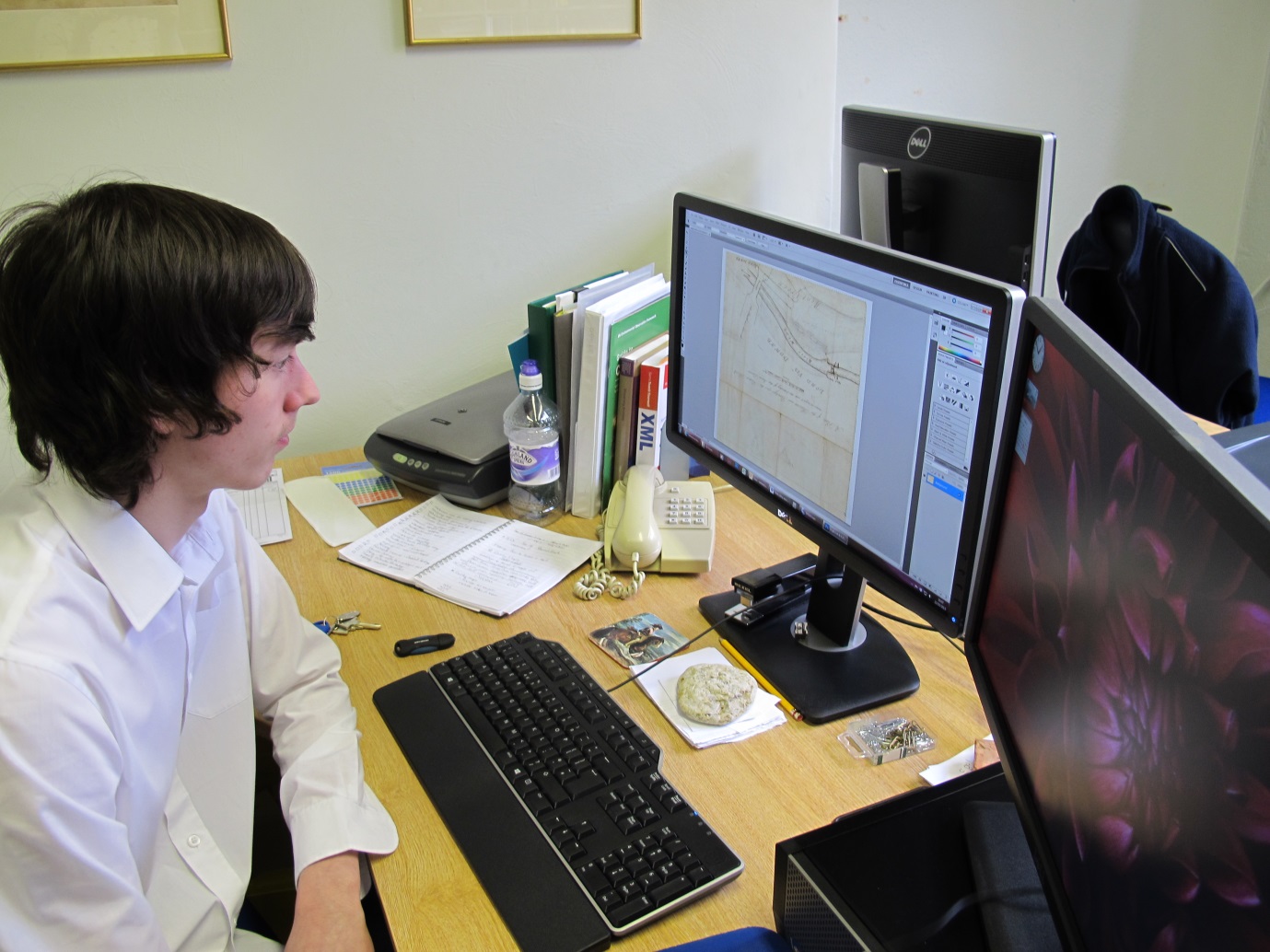 A work experience student helps to process scans of original documents in the Smith archive