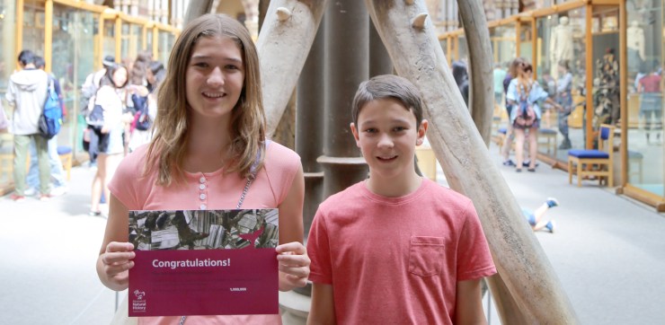 Daisy and her brother George have travelled a long way for their first visit to the Museum. They live on the outskirts of San Francisco, California, and are spending summer with their grandparents in Cassington, just outside Oxford. Daisy says she loves exploring the variety of museums in her home town, so was excited to start looking around what she called the “impressive” museum. George (visitor 1,000,001) likes “museums with exciting things”, so we hope he finds enough to excite him here!