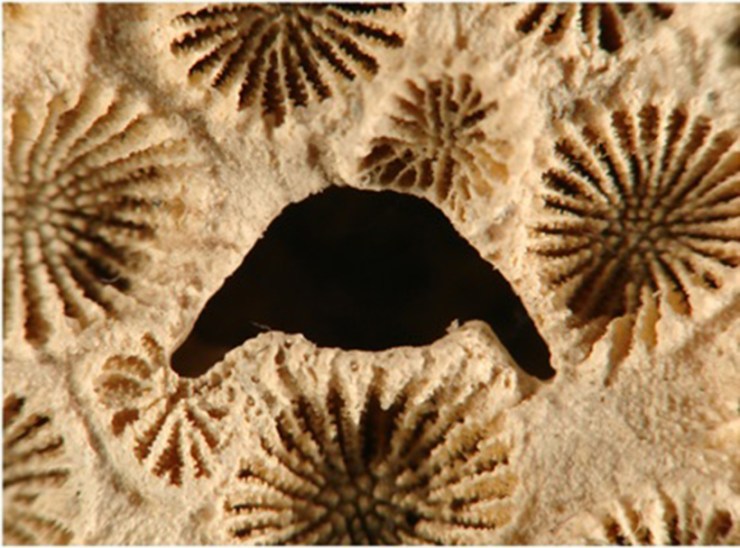 Unfortunately no fossils are known for these crabs; their size and thin carapace (shell) means they probably didn’t fossilise well. But together with colleagues from the United States, I’ve found crab dwellings in fossil corals for the very first time. The corals are several million years old and come from Florida and Cuba. Although we still don’t have fossils of the actual crabs, the holes, which are a type of trace fossil, are very valuable evidence.