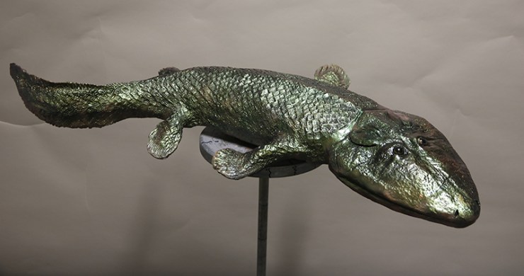 Education Officers here at the Museum often use Tiktaalik as an example of how animals moved out of water and onto land and how that relates to the history of life on Earth. Until now, this has been a bit of a challenge: our education activities all focus on using specimens, but only a few fossilized bones remain from this ancient animal. Enter Robyn Hill, model maker! Here she explains how she tackled the task of bringing Tiktaalik to life: