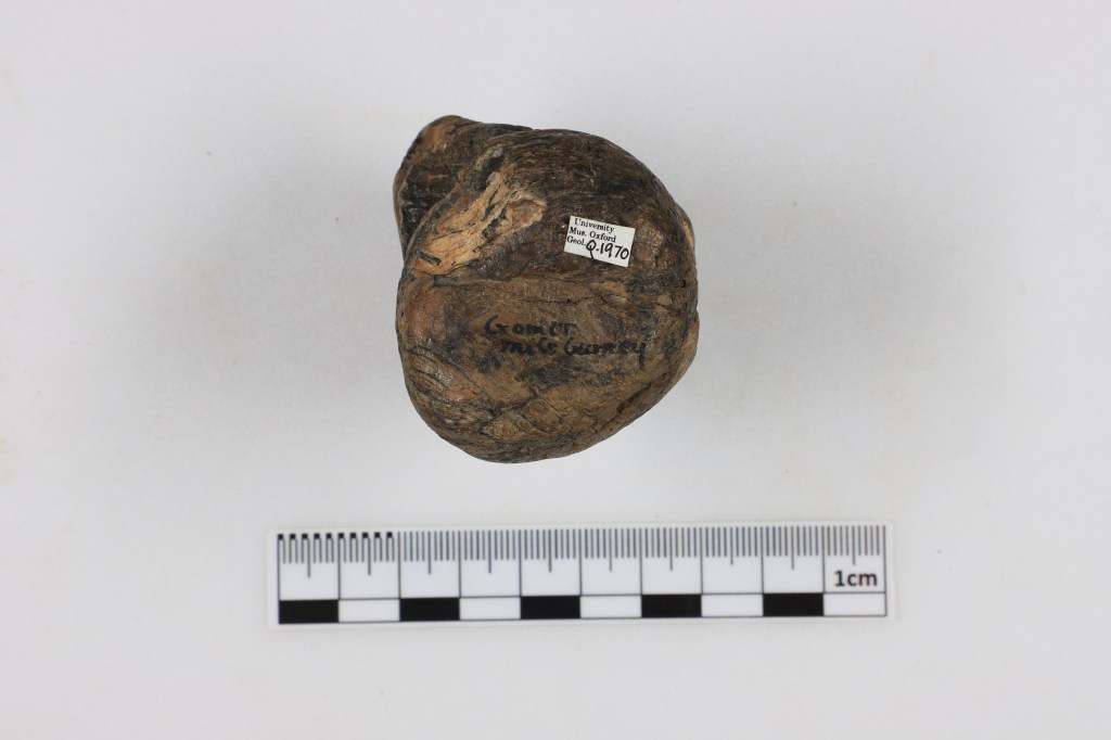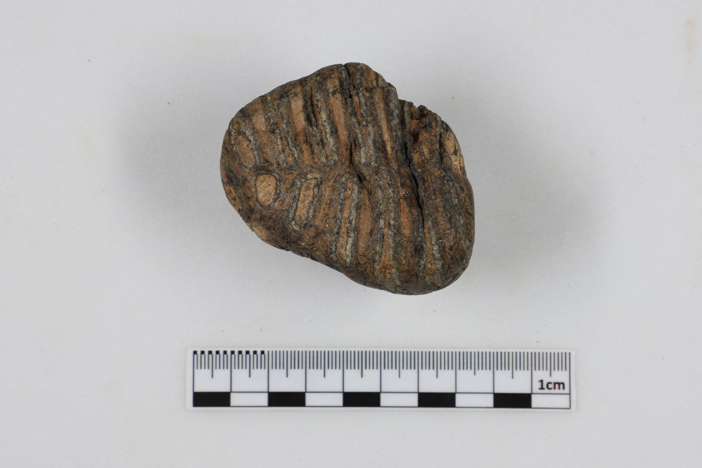 Milk molar from a mammal from the Pleistocene, possibly Archidiskodon meridionalis (Nesti 1825). Collected in Cromer, Norfolk by Miss Gurney. Donated by Miss Gurney.