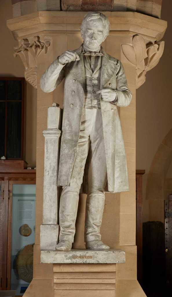 Prince Albert, a great supporter of the arts and sciences, convinced Queen Victoria to fund the first five statues of modern scientists, costing £350 in total. The first statue that Queen Victoria commissioned and paid for was of the philosopher Sir Francis Bacon — remembered as one of the fathers of the ‘scientific method’. His statue was carved by Pre-Raphaelite sculptor Thomas Woolner. The remaining four statues that Queen Victoria paid for – of Galileo, Isaac Newton, Gottfried Liebnitz, and Hans Christian Ørsted – were to be sculpted by Alexander Munro. However, Munro was only able to complete three of these. After the University of Oxford repeatedly failed to fulfil Munro’s request for a likeness of Ørsted, the statue of the Danish physicist went unfinished. Not wanting to waste the money that had been gifted by Queen Victoria, the Museum decided to arrange for a plaster cast to be made of a pre-existing statue of Ørsted, which was sent over from Denmark in 1855.