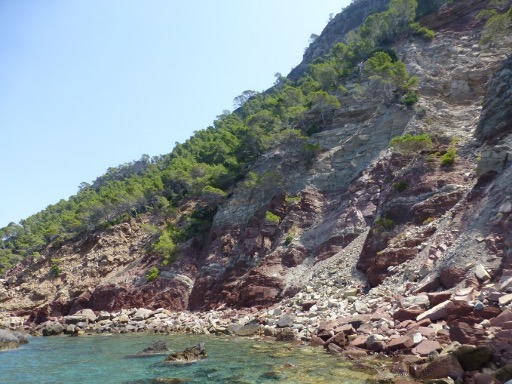 Coastal cliffs near Estellencs (Mallorca, Spain). Palaeontologists working here discovered fossils of Triassic mayfly nymphs with unusual gut contents. (photo: Balearic Museum of Natural Sciences)