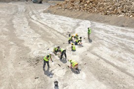 The excavation was made possible through the continued collaboration with the quarry operators Smiths Bletchington, Dewars Farm and Duns Tew Quarry Manager Mark Stanway, and his staff. As in 2024, a team of more than 100 people worked at the site, co-led by Oxford University Museum of Natural History (OUMNH) and University of Birmingham (UoB) and joined by collaborators from Liverpool John Moores University. Over seven days, the teams battled against a much drier, harder surface than the previous year focusing on a set of around 80 very large (up to 1m long) sauropod prints, that ran approximately north-south across the entire site.