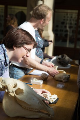 – 4 volunteers tucked away in the Earth Collections cleaning ancient horse fossils or sorting Jurassic fish teeth.