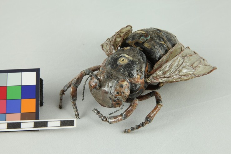 As you can see in the image at the top of the article, the bees themselves are also intricately painted, with rabbit hair used to simulate their natural fuzz, and delicate wings constructed from metal wire.
