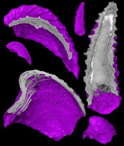 Virtual cross-sections through small shelly fossils created using X-ray imaging.