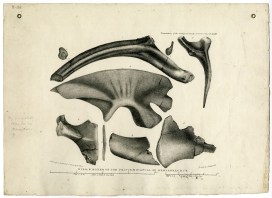 These drawings, by William Buckland’s wife Mary Morland, featured in Buckland’s “Notice on the Megalosaurus or great Fossil Lizard of Stonesfield” in the Transactions of the Geological Society of London, Series 2, vol. 1, pp. 390-396.