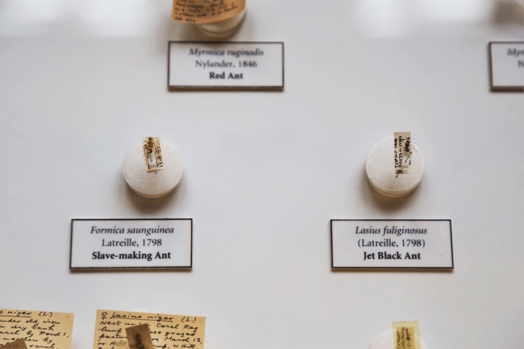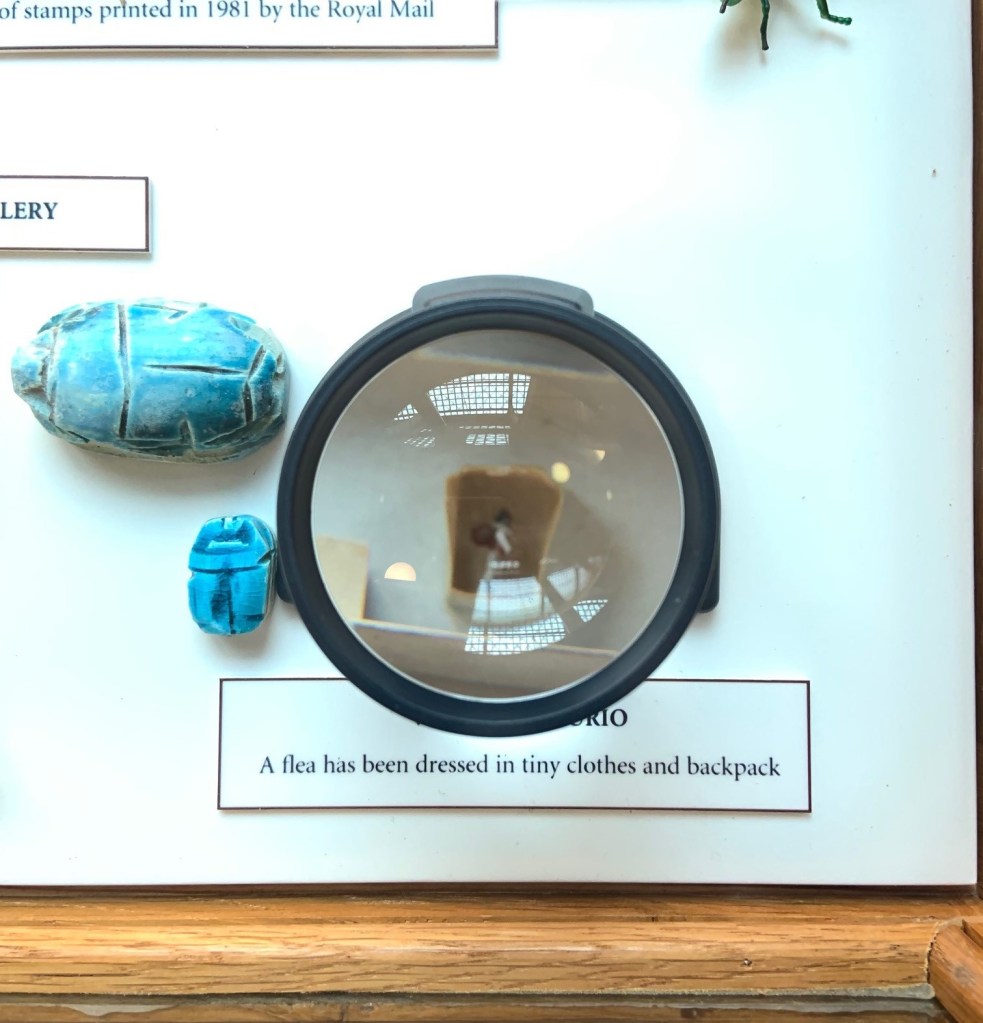 According to Collections Assistant Rob Douglas, stuffing large insect specimens with cotton wool used to be a common entomological practice. Insects with fatty insides, like locusts, must be gutted to ensure good preservation. Following the removal of the insects’ insides, cotton was often used to return their abdomens to their usual size and shape. Locusts’ ample fat stores contribute as much to their physical prowess as their powerful hind legs; sustaining them through migrations of up to 310 miles a day.3 Such migrations occur when locusts are exposed to a dry spell followed by wet weather, allowing for the sudden regrowth of vegetation. These conditions will cause locusts to switch their solitary lifestyles for gregariousness, coming together to chomp their way through crops and vegetation at a density of 80-160 million insects per square mile. A large migrating swarm of locusts has been estimated to need as many calories in a day as 1.5 million human males, explaining why even ordinary-sized locusts are capable of causing agricultural annihilation.4