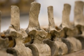 The plesiosaur’s ribs and vertebrae still inside the rock