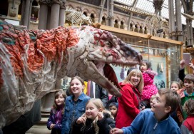 During half term, hundreds of children (and quite possibly a few parents) made Dodo masks and T. rex finger puppets at our Family Friendly activity; then later in the week there was the rather terrifying surprise appearance of creatures from the Dinosaur Zoo stage show. A five metre Australovenator ‘puppet’ marauded through the court, scattering children as it went and earning us a nice spot on the local TV news. The Dinosaur Zoo was visiting the Museum ahead of shows at Oxford’s New Theatre in April, so check that out if you missed the action here.