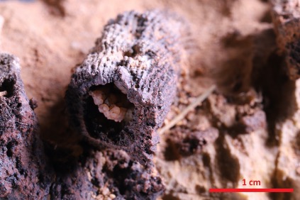 As well as undertaking conservation repairs, I also documented the condition of the items; photographing the manuscripts before and after conservation treatments to ensure the Museum, or any other future conservators, have a record of my work. Whilst undertaking conservation treatments, I found some interesting and unexpected stowaways in the archive. What looked to be small holes in one of the pages of a letter ended up being recognised by one of the Museum’s entomologists as spider frass (poop). A moth had also decided to call the papers home at some point in the last two hundred years as I came across a small cocoon that was now long dead, desiccated (dry) and dusty. The most unusual find, however, was a small black dot that I initially thought was an insect. However, employing the help of a microscope and one of the Musuem’s entomologists, we realised that it was actually a seed! What kind of seed, and how or when that seed came to reside in the Buckland archive, we don’t know, but it shows the archive had a life and story of its own long before it came to rest here in the Museum.