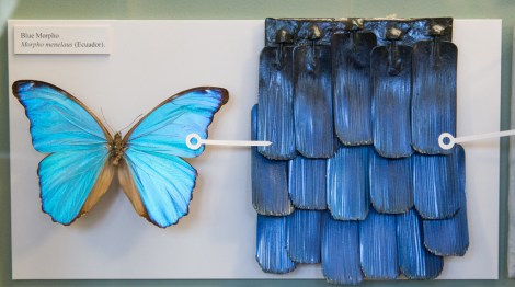 A model allows us to show the intricate scales of this Blue Morpho butterfly up close.