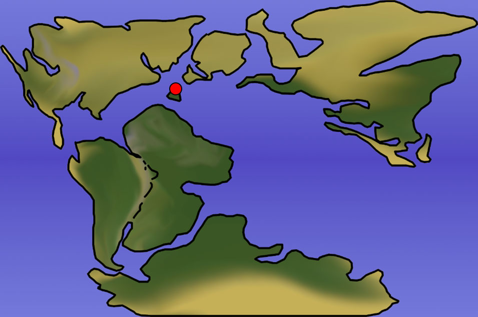 Left: Map of the world 105 million years ago, with ancient Cantabria highlighted. Author: William Potter Herrera, based on work from “The Planetary Habitability Laboratory” at UPR Arecibo. Right: An extant snakefly from OUMNH’s pinned collections.