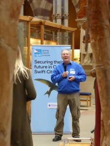 However, this morning, the 5th of May and right on cue, we were treated to the first two Swifts performing a low, high speed fly-by of the tower. Having flown around 14,000 miles in the last year from the Museum’s tower to their winter feeding grounds in southern Africa and back again, the Swifts have arrived on exactly the day of their average time of arrival over the last couple of decades. We know this because the Swifts in the tower are part of an ongoing study which is the longest running study of any bird colony in the world, started by David Lack in 1947, our Keeper of the Swifts, George Candelin still climbs the spiral stone stairs and ladders each week under red lights to carefully and quietly monitor each nest box throughout the breeding season an count and ring each chick noting down all sorts of other data as he does so from wind speeds to egg rejections, weights and even altercations between birds in boxes over rights to nest sites. Whilst you can’t be involved in the weighing and ringing of the birds, we do offer the next best way of getting involved; our nest box webcams, which you can find on our ‘Swifts in the Tower’ page, allow you to watch all the action live as it happens from the arrival of the adults to the final fledging as the next generation takes wing for the first time. Hidden microphones will also allow you to hear as screaming parties bang their wings against the nest box covers in order to ascertain if they are occupied and the keening noises of begging chicks! George’s stats and comments will also be downloaded to the Swift’s Diary each week enabling you to get a full picture of what’s happening across the colony’s 147 nest boxes as the season progresses.